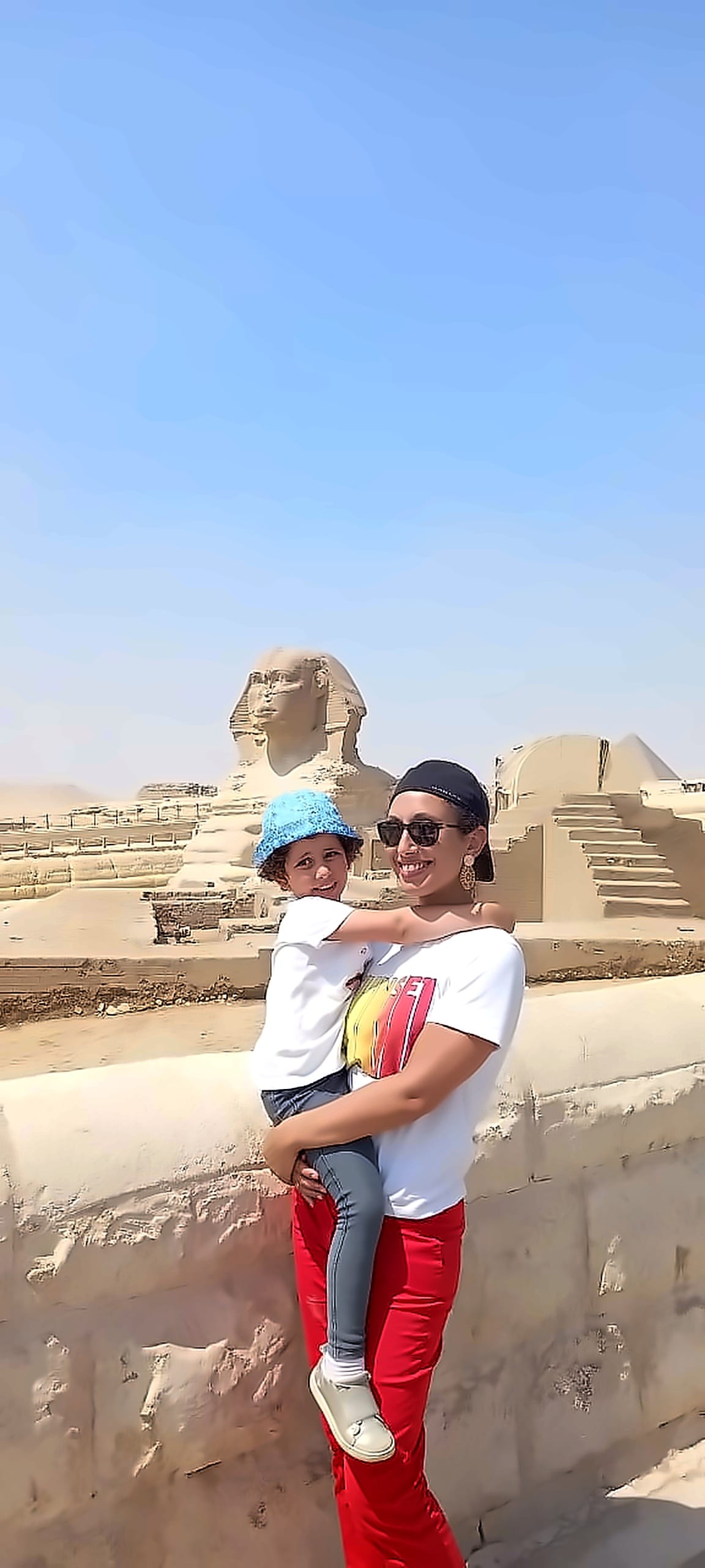 Early start at Giza. The three pyramids, the Sphinx, and a camel ride are included — your guide arranges a reputable operator and accompanies your family—an afternoon at the hotel pool before the flight south.