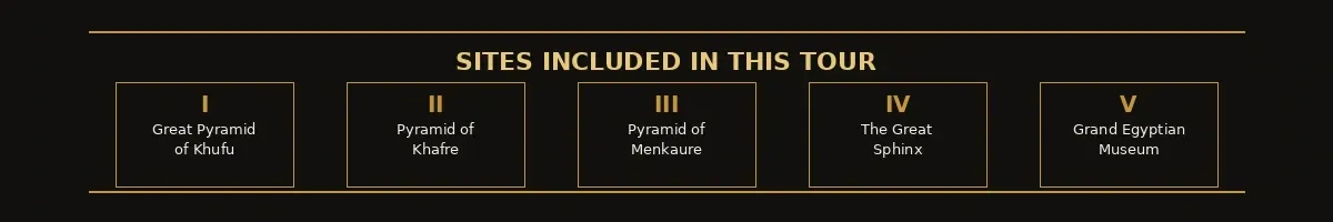 ✦ One detail that consistently surprises visitors: the smallest of the three Giza pyramids — Menkaure's — is still taller than any building in most European cities. Your guide will point this out, and you will suddenly recalibrate the entire site.
