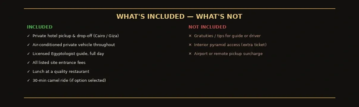 Optional: Interior pyramid access can be arranged on request before booking (separate ticket, limited availability).
